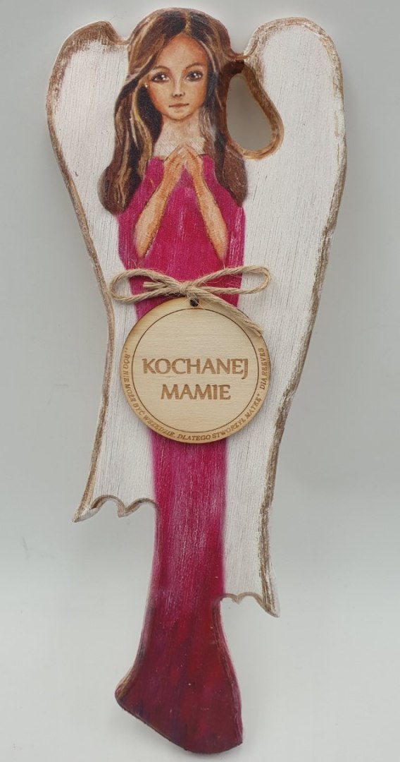 Anioł drewniany malowany dla Kochanej Mamy 30 cm