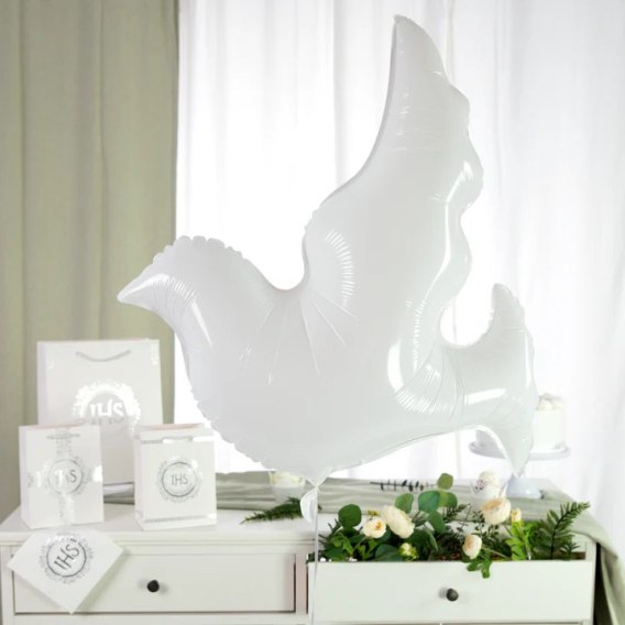 Balon foliowy w kszt.ałcie białego gołębia będzie wspaniałym elementem dekoracji. Z okazji komunii, chrztu, ślubu czy innych uroczystości w czasie których ważna jest jego symbolika: miłość, czystość, pokój, nadzieja.