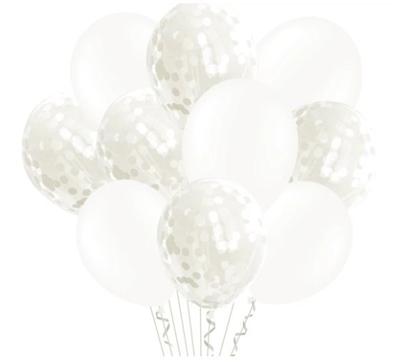 Balony 12 cali białe z konfetti 20szt. | 400904