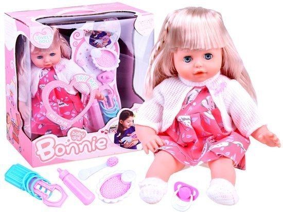 Śliczna lalka bobas będzie idealną towarzyszką zabaw dziecka i z pewnością sprawi wiele radości swojej opiekunce. Główka, rączki i nóżki lalki są wykonane z gumy, natomiast tułów wypełniony jest pluszem dzięki czemu miękka laleczka idealnie nadaje się do tulenia.