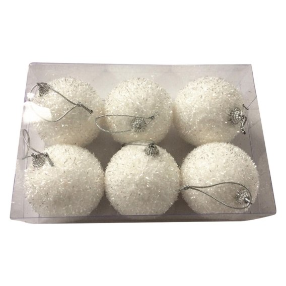 Bombki białe 6szt. JEŻYK 10cm | 434