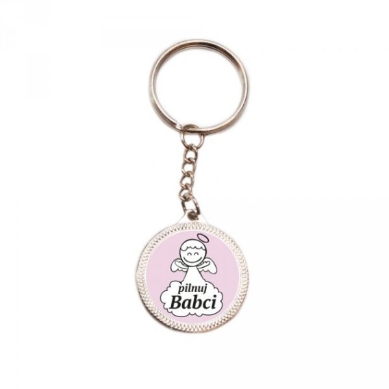 Breloczek 6szt metalowy z żelową naklejką aniołek "Pilnuj Babci" DIL-PH-BREL32/S-B-02
