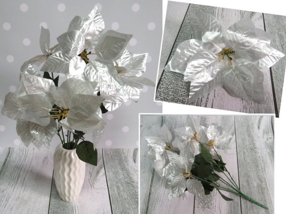 Bukiet 10kpl gwiazda bet. POINSECJA 50cm srebrna 7 kwiatów | GWA-17057-S