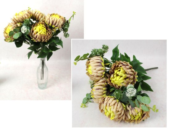 Bukiet CHRYZANTEMA wys. 41 cm, 10 łodyg (7 kwiatów 11x4 cm) ŻÓŁTA cieniowana MH-035A