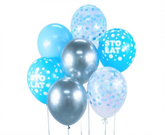 Bukiet balonowy srebrno-niebieski "Sto Lat" 7 szt. BB-SNS7