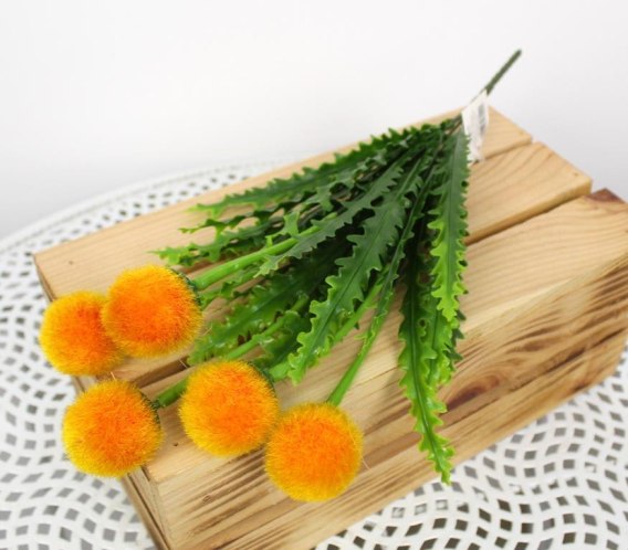 Bukiet futrzane kulki ping pong pomarańczowe 38cm 5 kwiatów 4szt. | LAN-103D