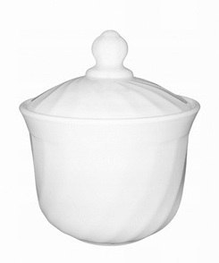 Cukiernica z kolekcji Eva wykonana jest ze szkła hartowanego w białym kolorze. W skład zestawu wchodzi pojemnik na cukier oraz pokrywka. Cukiernica posiada klasyczny kształt. Sprawdza się zarówno w domu jak i w profesjonalnej gastronomii. Produkt jest przeznaczony do kontaktu z żywnością, można go myć w zmywarce.
