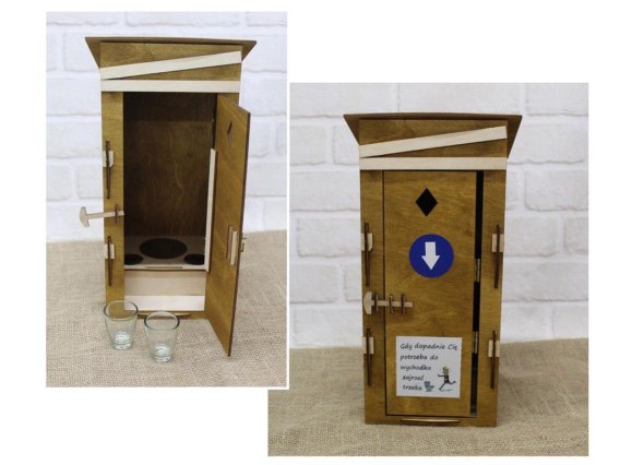 Dekoracja drewniana WYCHODEK + dwa szklane kieliszki IN00162