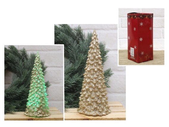 Dekoracja świąteczna led CHOINKA posypana brokatem 20x9 cm - złota AE-8740