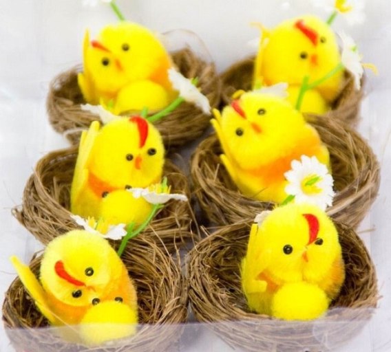 Dekoracja wielkanocna 6szt. kurczaki ze stokrotką w koszyku 5459 Wie-0249