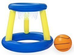 Niebiesko-żółty dmuchany zestaw do gry w kosza to propozycja firmy Bestway na aktywne spędzenie czasu podczas kąpieli w basenie. Na pewno spodoba się dzieciom, które lubią spędzać czas w ruchu. Zabawa w wodzie w upalne letnie dni na pewno będzie wspaniała i zapewni mnóstwo frajdy. Wystarczy nadmuchać wszystkie elementy i zabawa gotowa! Unoszący się na powierzchni wody kosz, na pewno nie ułatwi trafienia w cel, przez co gra będzie jeszcze bardziej ciekawa, a dzieci będą mogły pozytywnie spożytkować nadmiar energii.