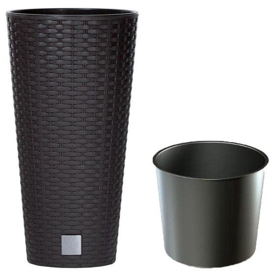 • Wysoka donica plastikowa wykonana na wzór rattanu