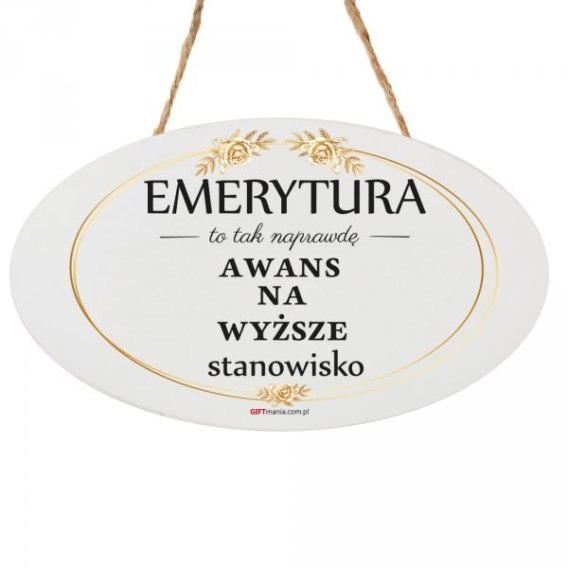 Drewniana tabliczka owal wzbogacona lakierem UV z napisem "Emerytura to tak naprawdę..."