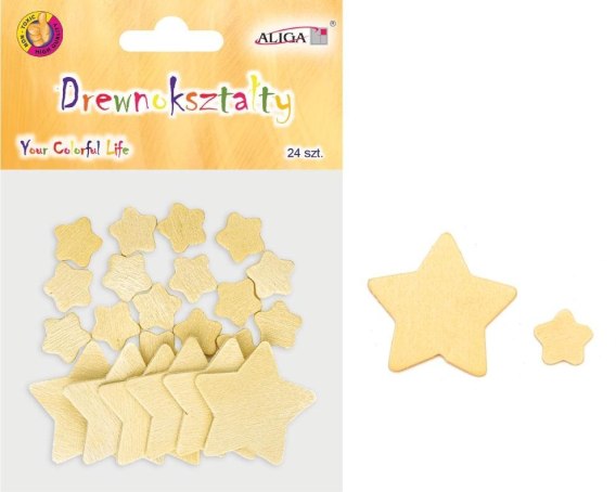 Drewniane gwiazdki mix rozmiarów op. 24szt CDX-6242
