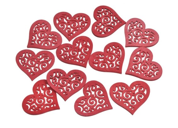 Drewniane serca ażurowe czerwone 4cm x 3,5cm 12szt. 253CAN1449_R