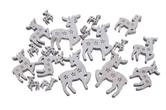 Drewniane wycinanki renifery biało-szare mix 18szt 129CAN7953WW