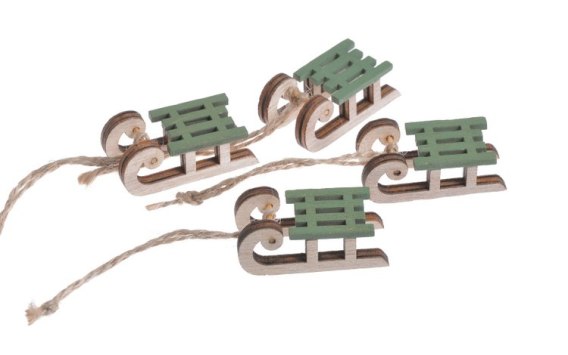 Drewniane zawieszki saneczki 4szt HDA-6106_GR