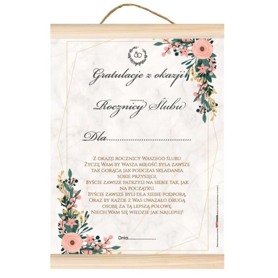 Dyplom gratulacje z okazji ... rocznicy ślubu. " Z okazji rocznicy ślubu życzę Wam..." do wypisania