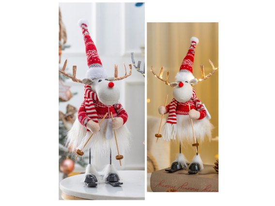 Figurka bożonarodzeniowa RENIFER na nartach ze świecącymi rogami 43x13x13 cm XGI-107