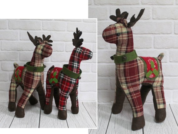 Figurka świąteczna bożonarodzeniowa maskotka RENIFER w kratę 50 cm mix wzorów XFI-19031