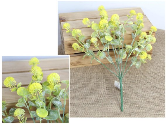 Gałązka 2szt liści z ŻÓŁTYMI KWIATAMI wys. 33 cm 7 łodyg MD-067B