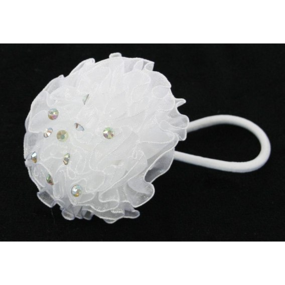 Gumki do włosów pompon + cyrkonie białe 10szt. G7905