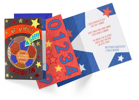 Karnet Urodziny młodzieżowe (wymienne cyferki) piłka DK-1140