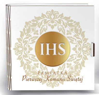 Kasetka kwadrat (życzenia + kopertka) 16 x 16cm KOMUNIA ŚW IHS