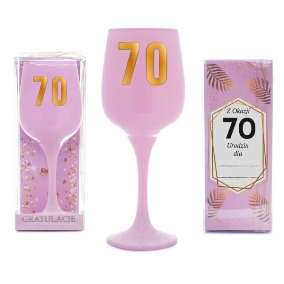Kieliszek urodzinowy do wina różowy w ozdobnym opakowaniu - Z Okazji 70 Urodzin dla...