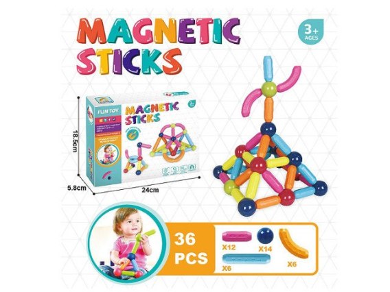 Klocki magnetyczne 36el. 24 x 18,5 x 6 cm BKLO6492
