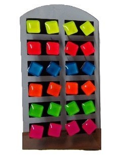 Kolczyki na stojaku 12 par KWADRATY jaskrawe