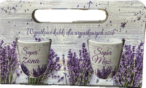 Komplet 2 kubków w ozdobnym kartoniku Mąż Żona - lawenda