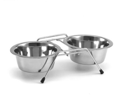 Komplet 2 misek nierdzewnych dla kota/psa ze stojakiem