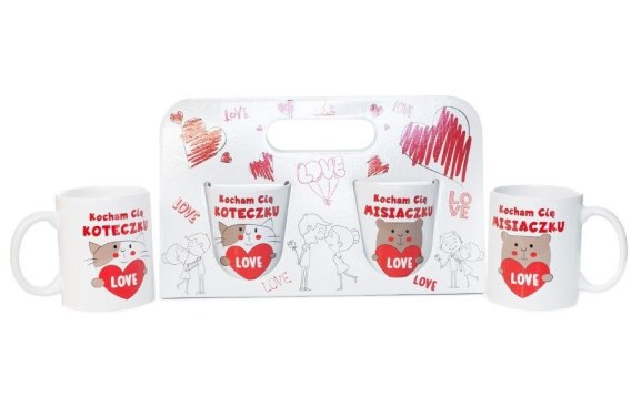 Komplet dwóch kubków w ozdobnym opakowaniu "Kocham Cię misiaczku - Kocham Cię koteczku"
