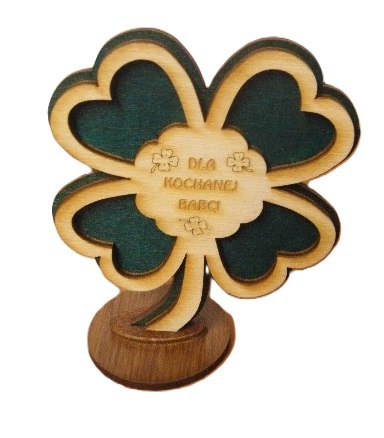 Koniczynka na drewnianej podstawce Dla Kochanej Babci, 10 x 8 cm