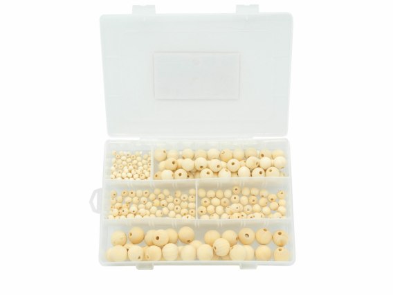 Zestaw 234szt. koralików drewnianych w zamykanym pudełku: