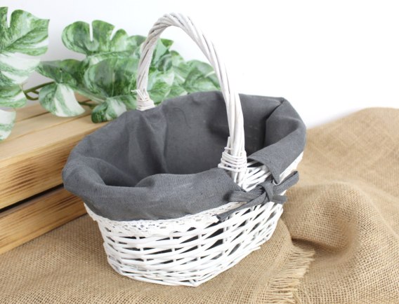 Koszyk wiklinowy owalny wyściełany szarym materiałem BIAŁY LH2369S