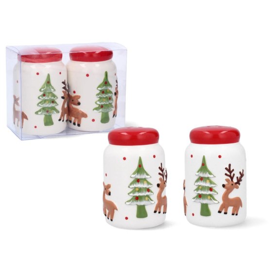 Kpl.2 przyprawników 6 x 6 x 9 cm- RENIFER Z CHOINKĄ 8484 -opakowanie zbiorcze 4kpl