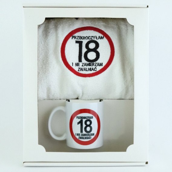 Kpl.ręcznik+kubek w pudełku ''PRZEKROCZYŁAM 18..''