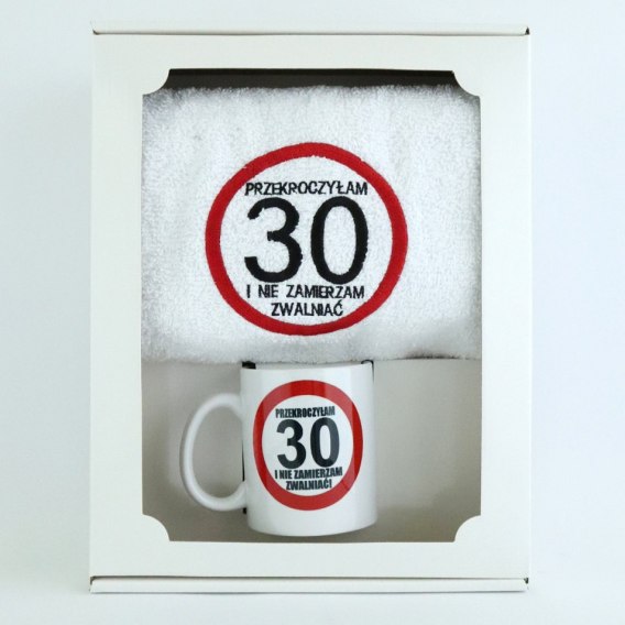 Kpl.ręcznik+kubek w pudełku ''PRZEKROCZYŁAM 30..''