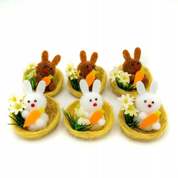 Króliczki wielkanocne w gniazdkach 5,5 cm 6 szt. | WKZ-8277