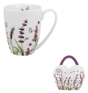 Linia zdobiona motywem malowanych gałązek lawendy, w intensywnie fioletowym kolorze, "wyrastających" z podstawy kubka.