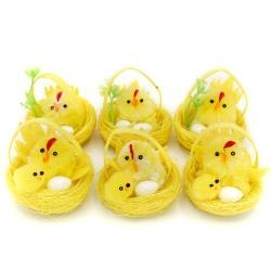 Kurczaki wielkanocne w gniazdkach 5,5 cm. 6 szt. WKZ-8260