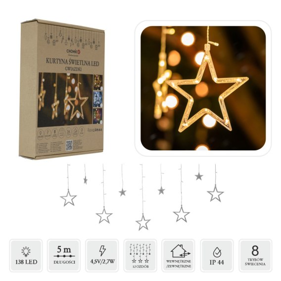 Kurtyna świetlna led GWIAZDKI 138. długość 3 + 2m CIEPŁY BIAŁY
