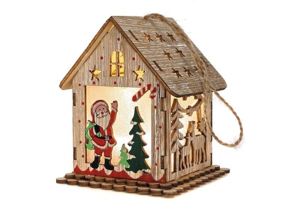 Lampka led domek z Mikołajem, drewniany,11x9x9cm