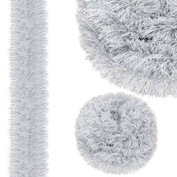 Łańcuch choinkowy 6m srebrny perłowy, girlanda na choinkę, średnica 7cm