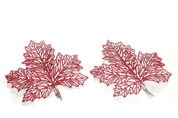 Liść brokatowy na klips 22x24cm czerwony | OZB05708