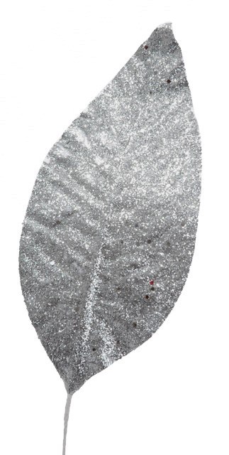 Liść z brokatem duży srebrny 28cm 12szt. | SB5043
