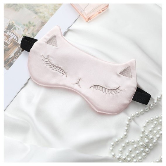 Maska do spania kot róż satynowa ozdobna | OPK01R