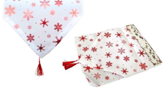 Mata bieżnik na stół świąteczny bożonarodzeniowy CZERWONE GWIAZDY 180 x 32 cm BIAŁY SN55506